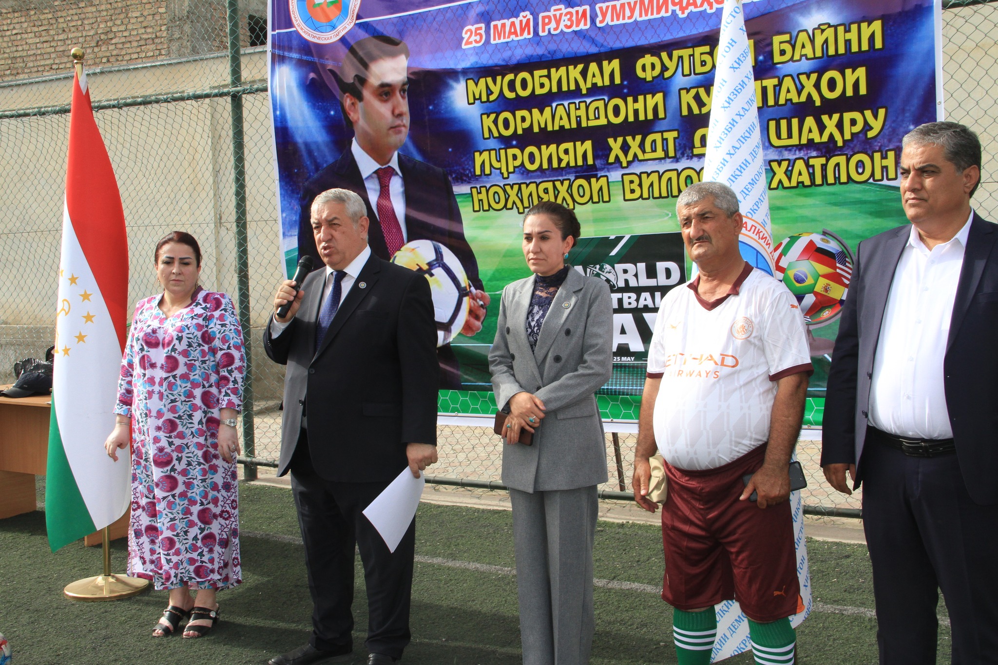 ӣ намуд. Зикр гардид, ки эълон гардидани 25 май ҳамчун “Рӯзи ҷаҳонии футбол” ва таҷлили ҳамасолаи он дар сатҳи баланд аз таваҷҷуҳи бевоситаи Ҳукумати мамлакат ва роҳбарияти олии кишвар нисбат ба соҳаи варзиш шаҳодат медиҳад. Сипас, дастаҳо бо ҳам рақобат намуда, дастаи Кумитаи иҷроияи ҲХДТ дар нощияи Вахш, сазовори ҷойи якум, дастаи Кумитаи иҷроияи ҲХДТ дар вилояти Хатлон ҷойи дуюм ва дастаи кумитаҳои иҷроияи ҲХДТ дар ноҳияҳои Қубодиён ва Хуросон ҷойи сеюмро сазовор гардиданд.