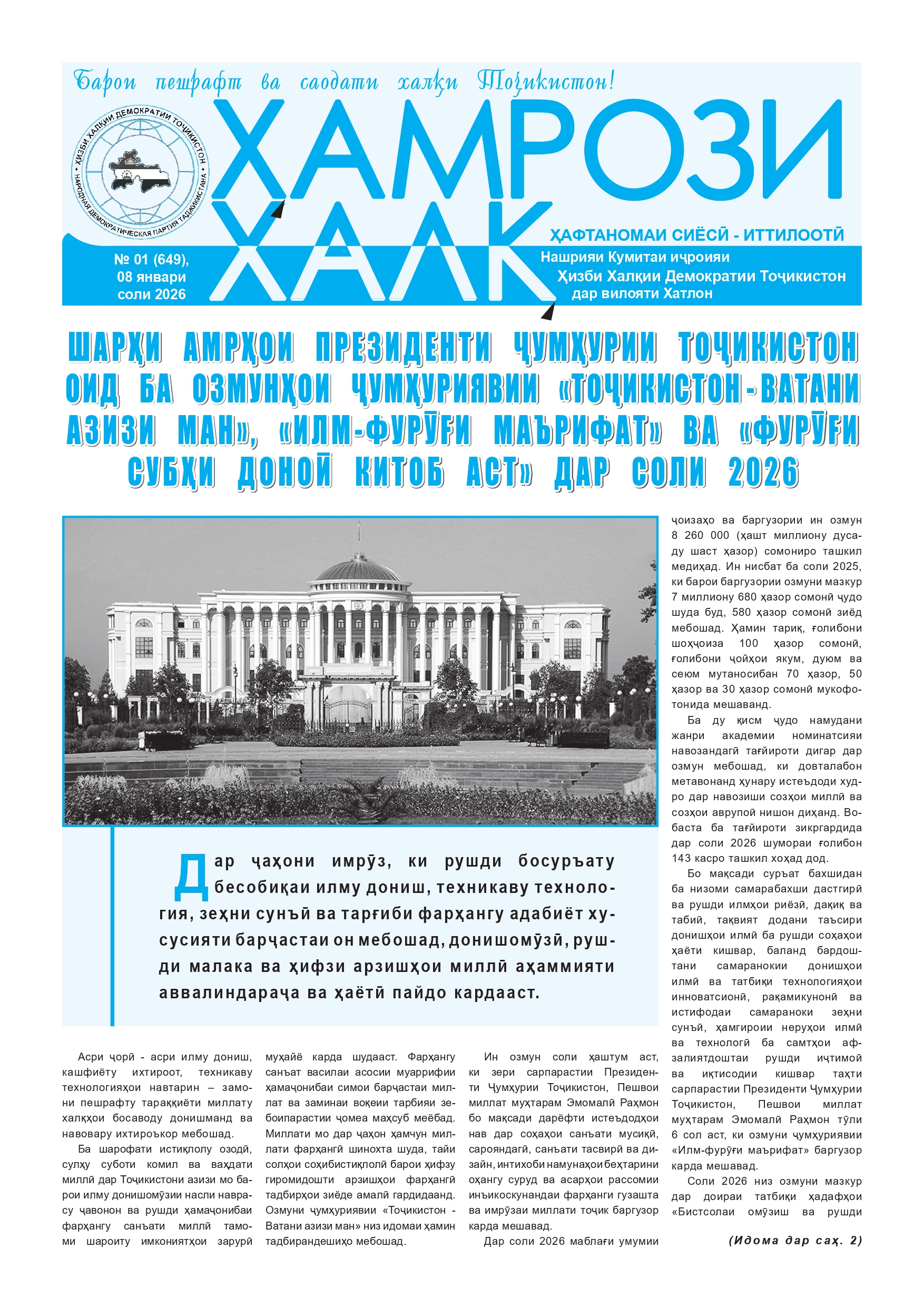 ЭЪЛОН ОЗМУНИ ВИЛОЯТӢ ТАҲТИ УНВОНИ “ҲХДТ - ЗОДАИ ИСТИҚЛОЛИЯТ”
