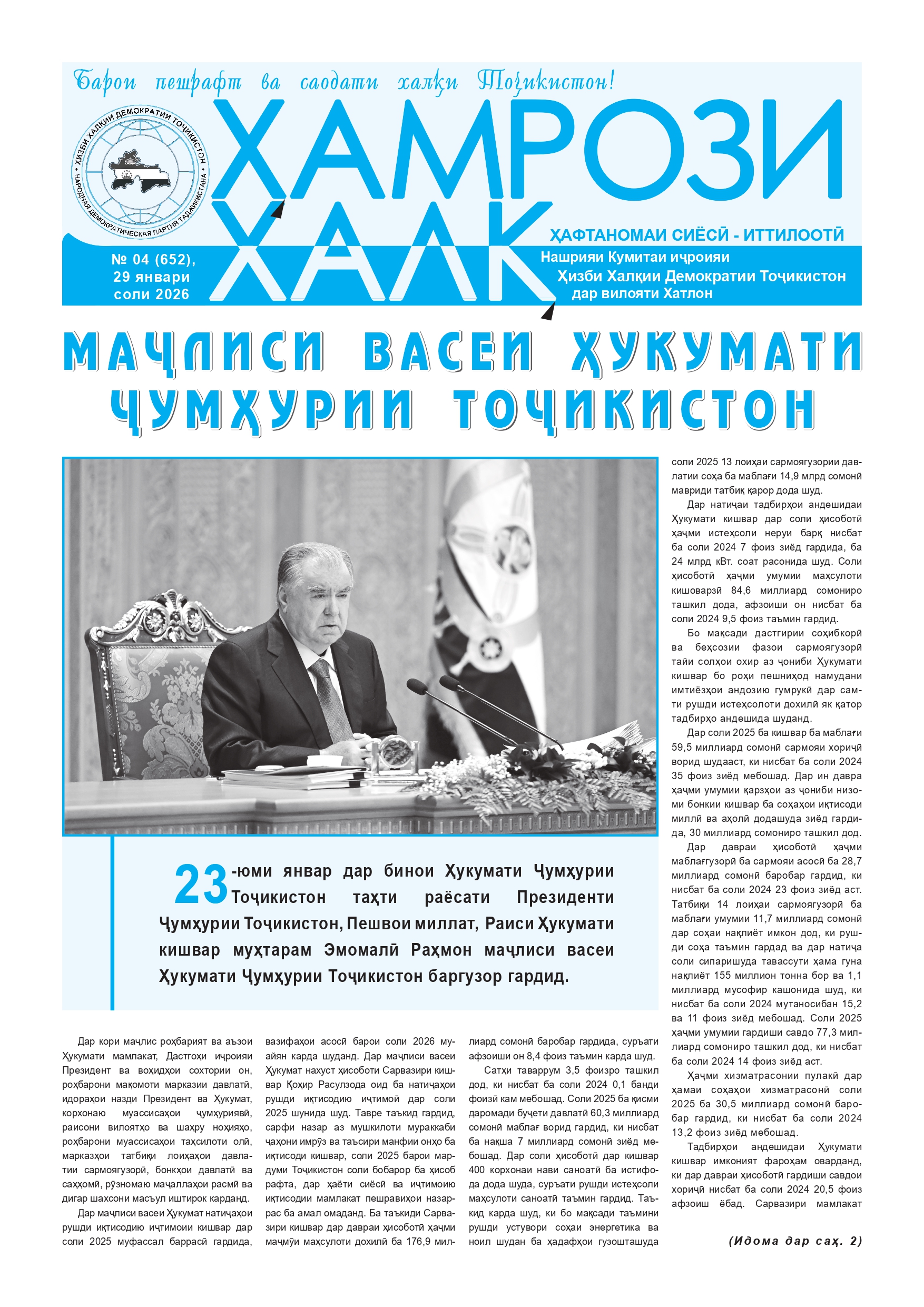 НАШРИЯИ ҲИЗБИИ "ҲАМРОЗИ ХАЛҚ" ШУМОРАИ №4 аз 29.01.2026