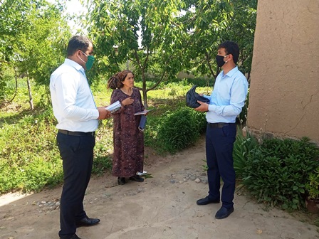 МУЪМИНОБОД. Дар доираи Соли шинохти бештари манфиатҳои миллӣ. Намояндагони Кумитаи иҷроияи Ҳизби Халқии Демократии Тоҷикистон дар ноҳияи Муъминобод бо кормандони муассисаи таҳсилоти миёнаи умумии №30 ва истиқоматкунандагони кӯчаи Ҷавонон оид ба самаранок истифода бурдани заминҳои наздиҳавлигӣ ва пешгирии сироятёбӣ аз бемории коронавирус бо усули “хона ба хона” корҳои оммафаҳмонииро баргузор намуда, ба иштирокчиён аз ҷониби волонтиёрони назди ТҶҶ “Cозандагони Ватан» ба миқдори 96 дона ниқобҳои муҳофизатӣ ва маводҳои антисептикӣ доир ба пешгирии бемории короновирус дастрас карда шуд.