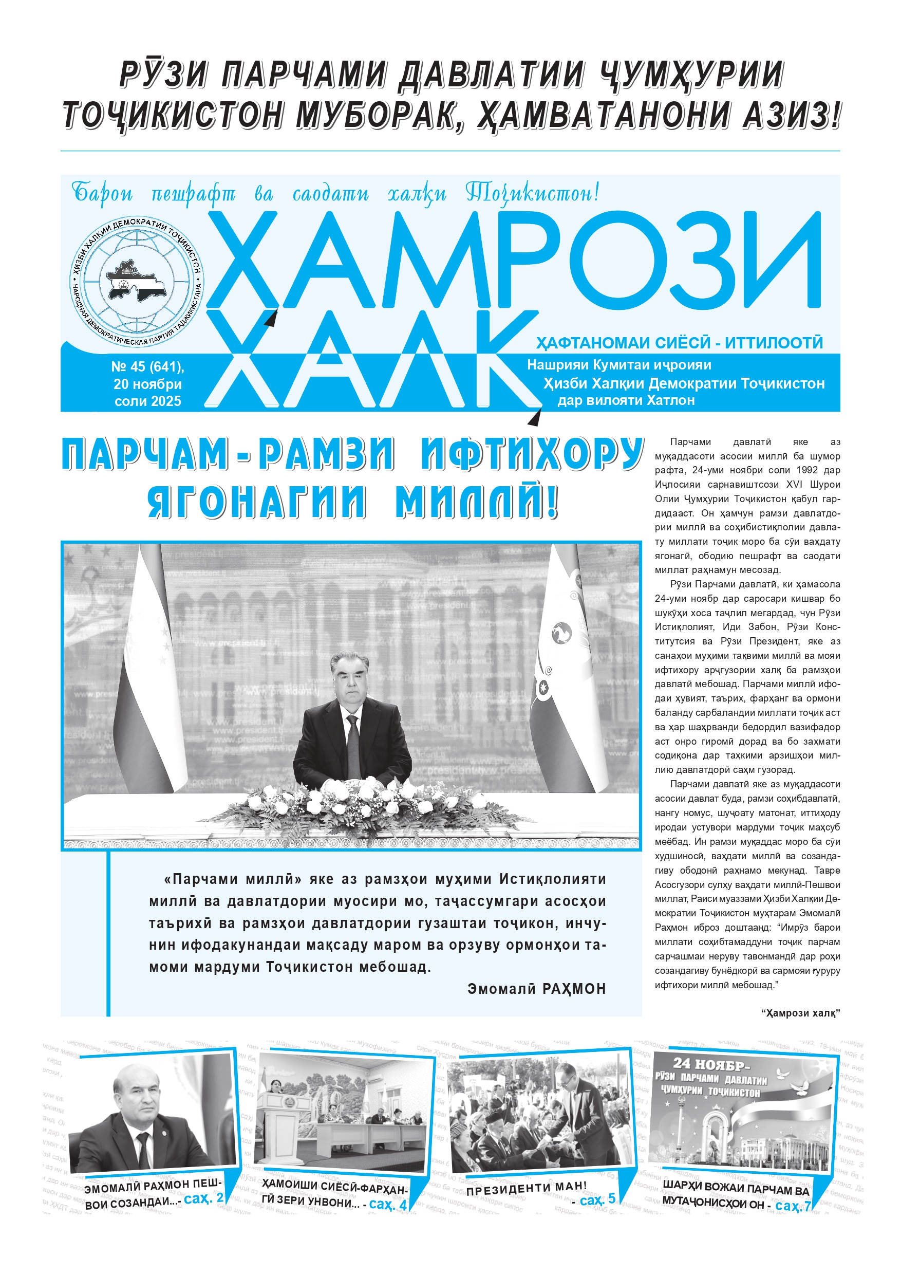 НАШРИЯИ ҲИЗБИИ "ҲАМРОЗИ ХАЛҚ" ШУМОРАИ №45 аз 20.11.2025