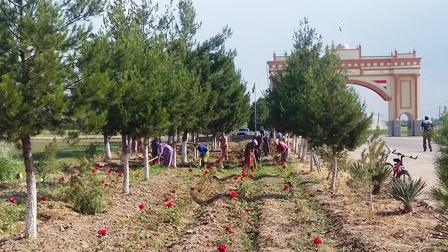 Баъдан дар қисмати амалии Аксияи ҳизбии «Якҷоя ҳал мекунем!» дар даромадгоҳи ноҳия гулу гулбуттаҳои ороишии мавсимию доимӣ шинонида шуд.